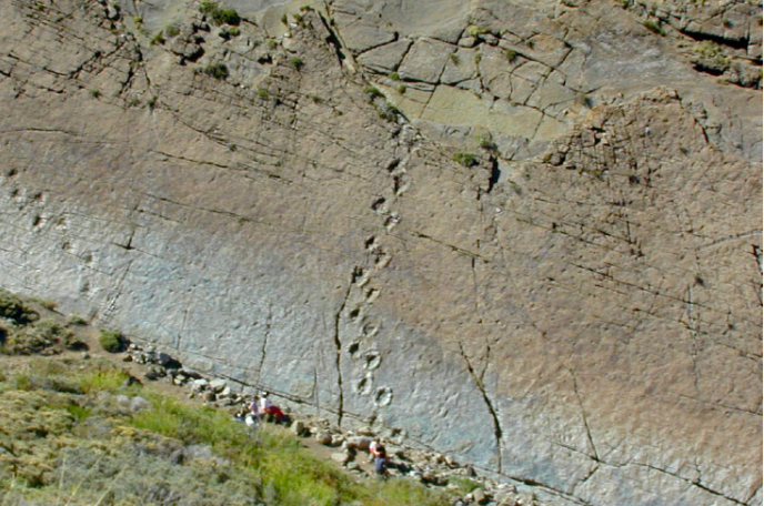 Un valle jurásico, con huellas de dinosaurios reales.